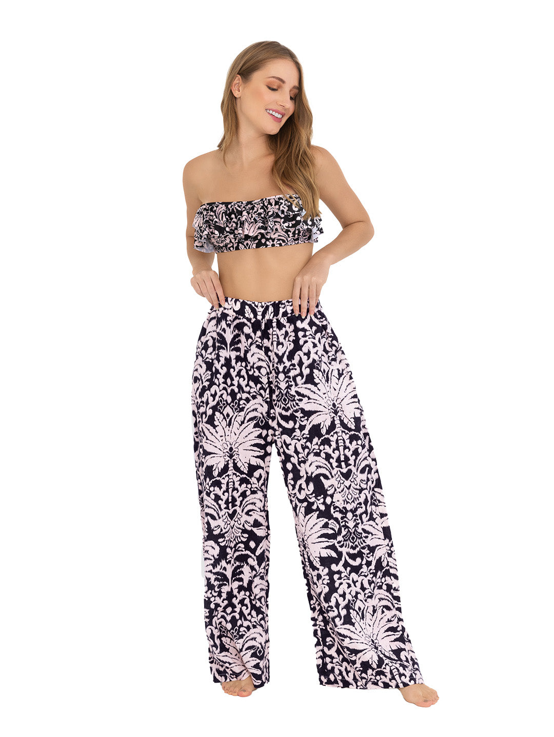 Enith pant is a silhouette with elastic waist and pockets, it is characterized by being comfortable and cool for summer days.